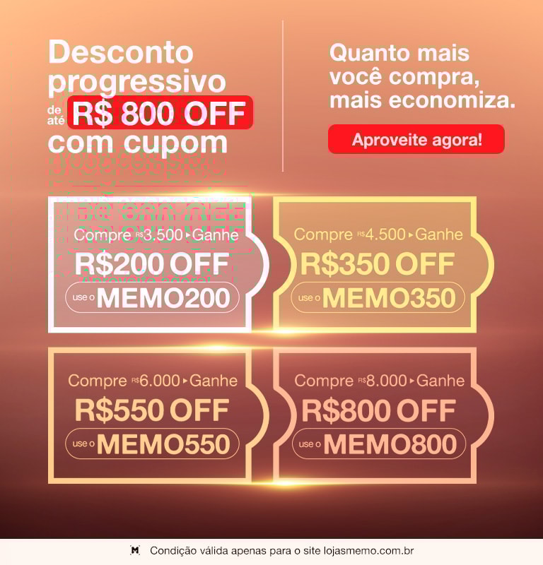 Desconto Progressivo: Ganhe até R$800 OFF com cupom